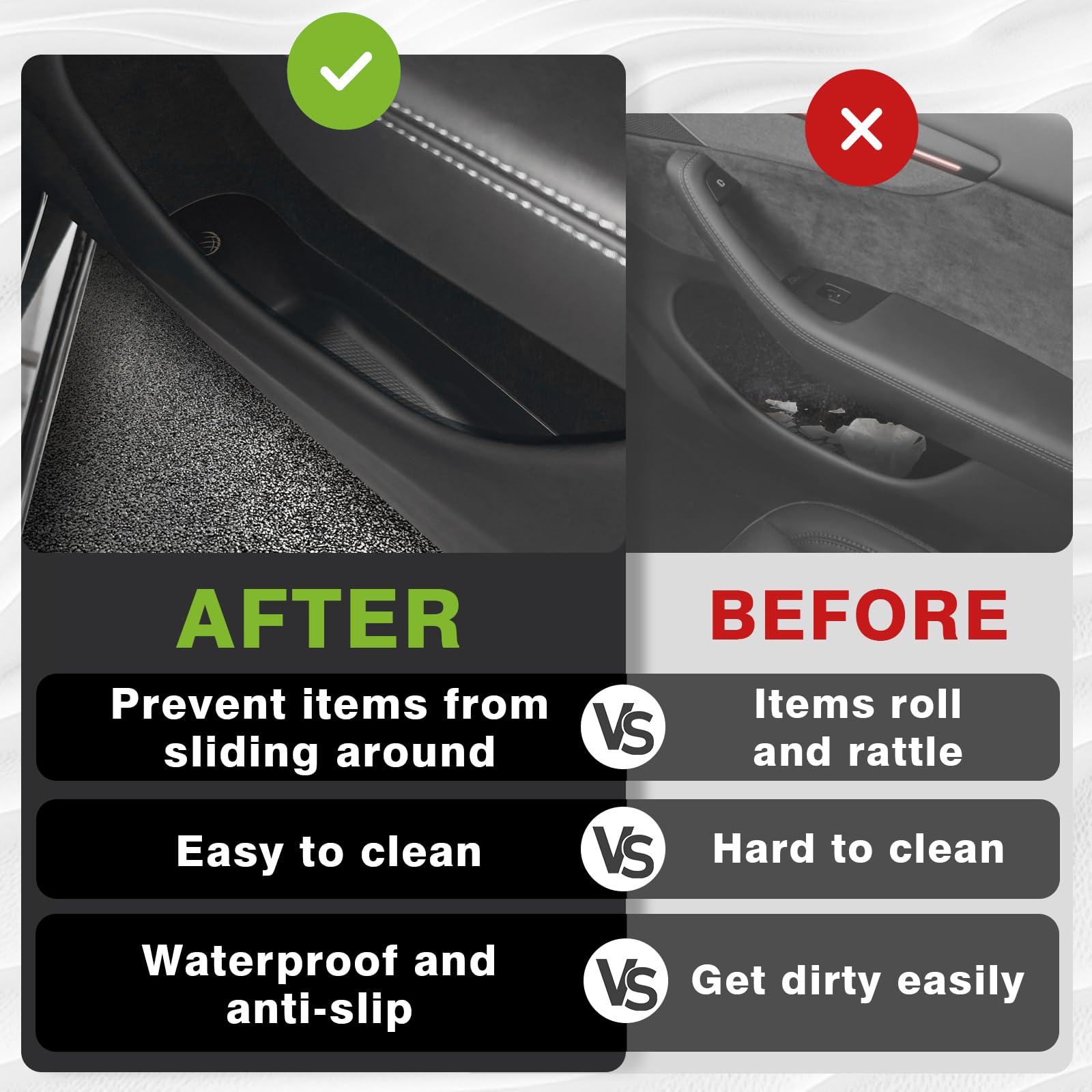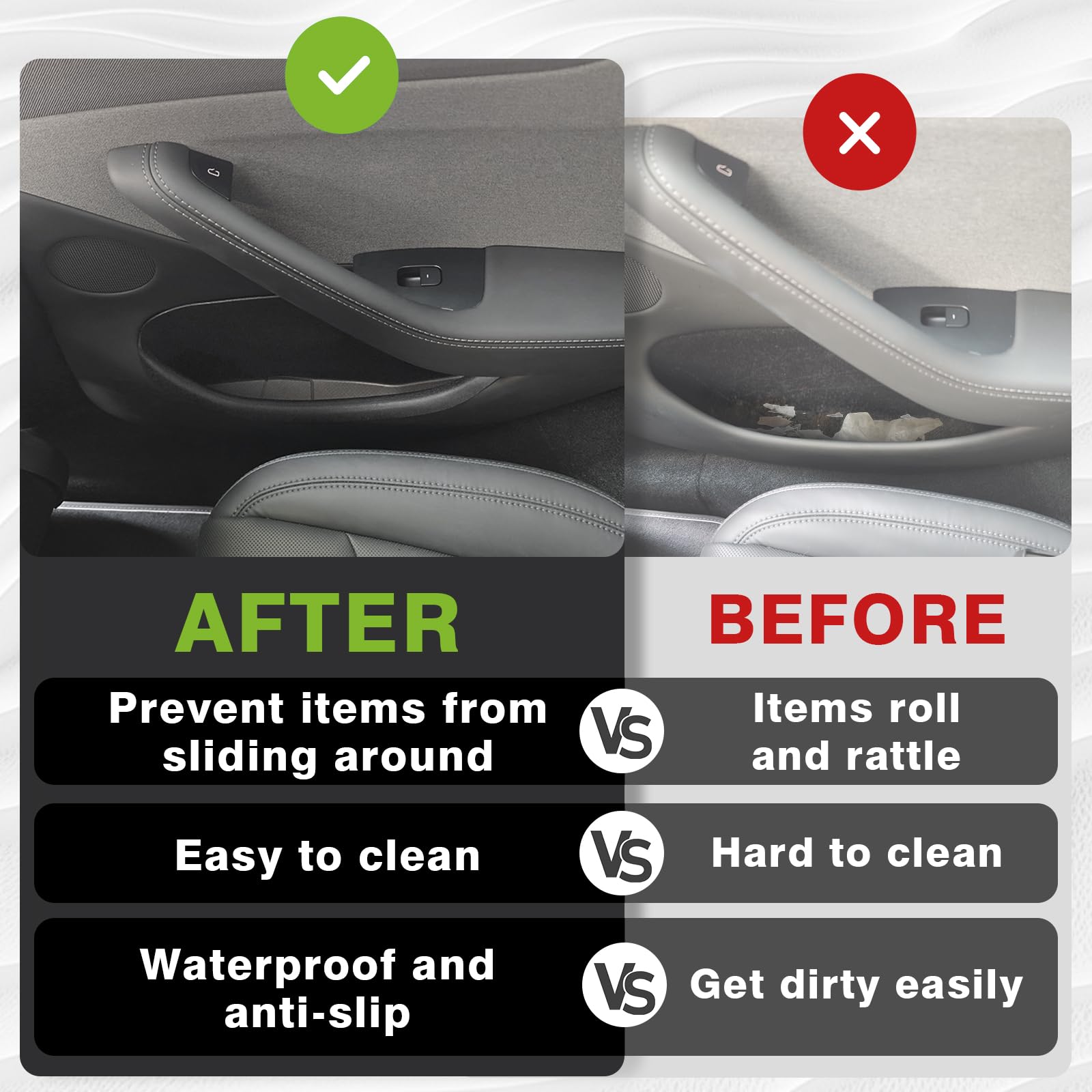 - High-Quality Material: Our door side organizer is made of premium ABS material that is wear-resistant and durable, making it sturdy and non-deforming. PVC insert mats equipped inside help to make it shock-absorbing
