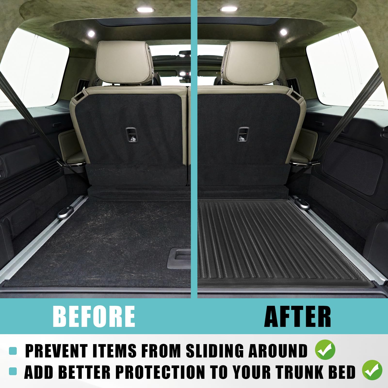 - Easy to Install & Clean: Our mat won't affect the function of OEM tie down anchors. No tools needed, it can be easily placed on or removed from your trunk floor. Easy to clean, it can be wiped with a rag, or rinsed with water.