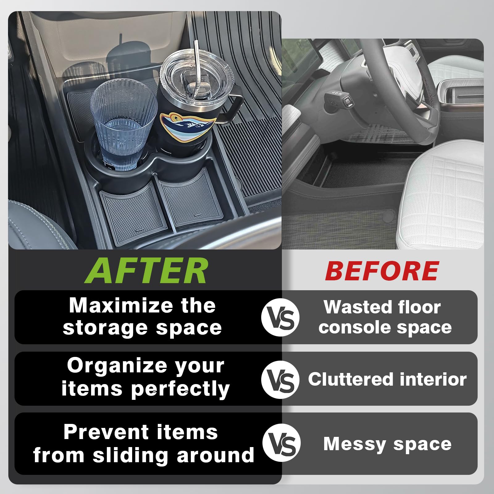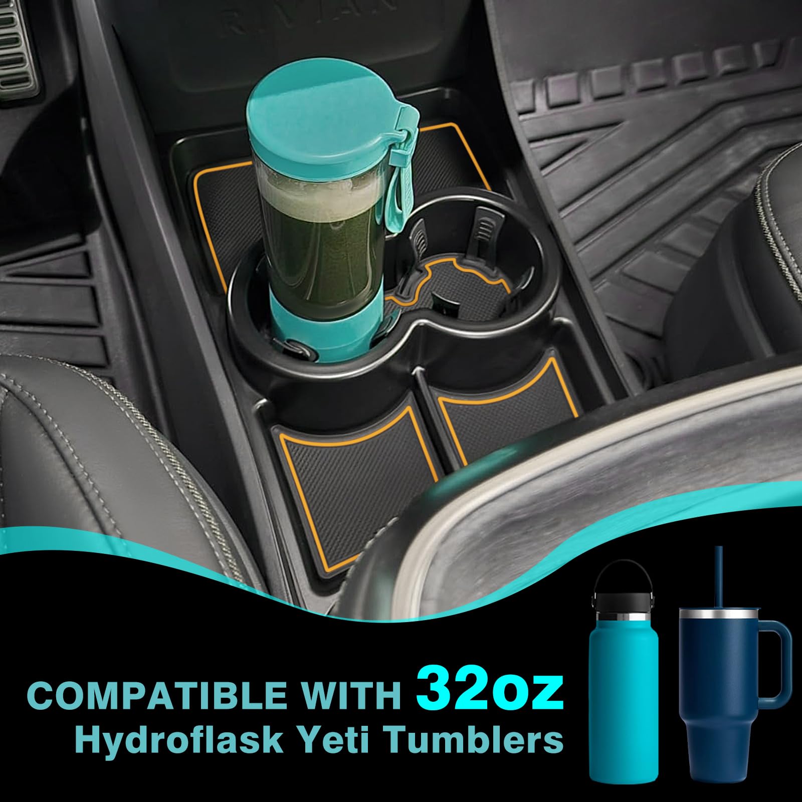 - Custom Size and Fit: BestEvMod Cup Holder Lower Console Tray is designed according to 3D laser scan data to make sure it fits your Rivian R1 2025+ Gen2 perfectly. Our cup holder compatible with 32oz Hydroflask/Yeti Tumbler perfectly