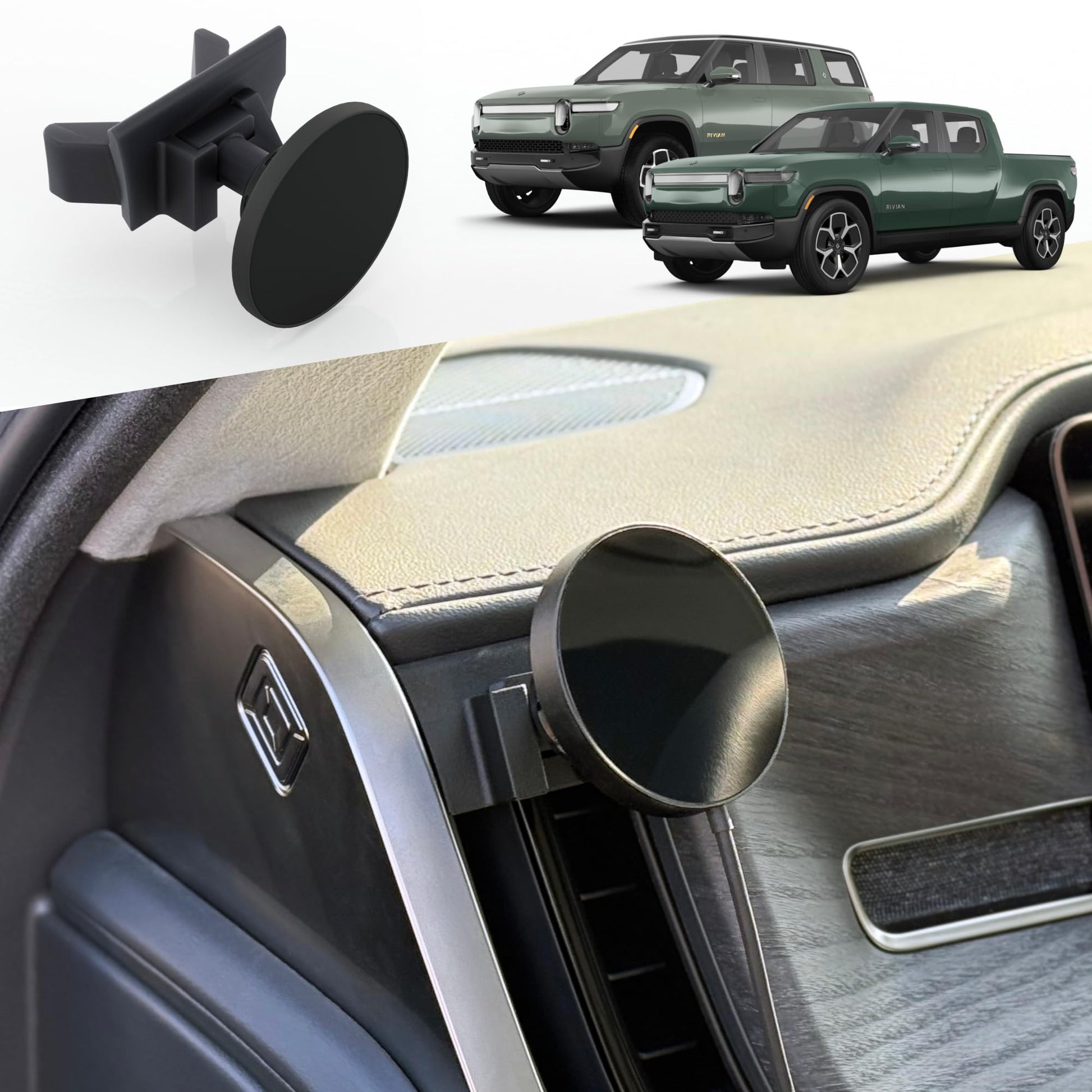 - š± Magnetic Mount: Securely holds your phone using strong magnets, perfect fit for Rivian R1T and Rivian R1S 2021-2026. Attaches to existing AC vents without adhesive, ensuring easy installation and removal.