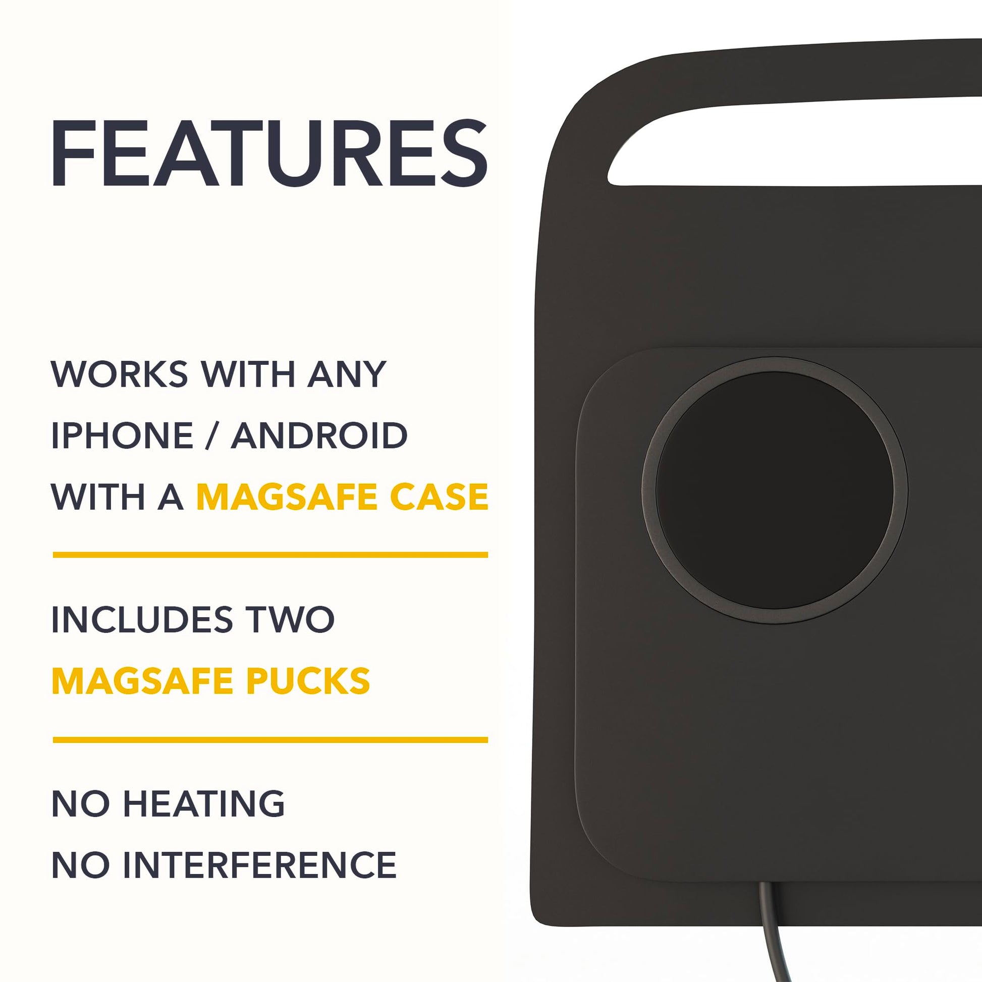 - ⚫️⚫️ Dual charging convenience with one USB-C: Our wireless phone charger is equipped with two charging pucks powered by a single USB-C connection, allowing you to charge multiple devices simultaneously without the need for additional cables or adapters.