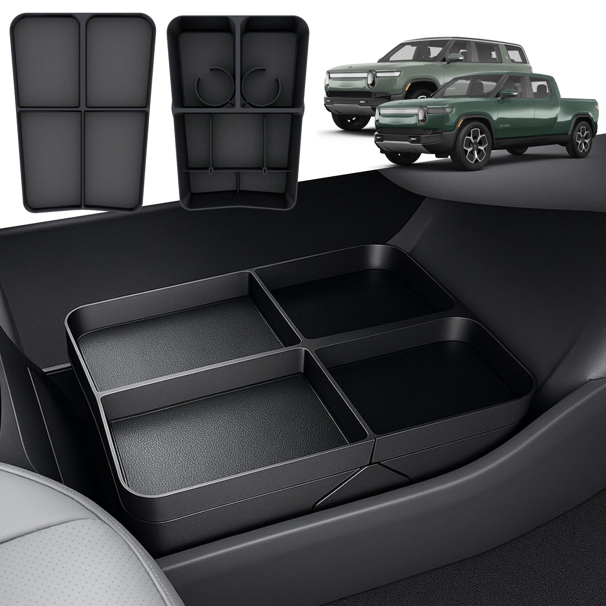 - š Perfect Fit & Style: This organizer is meticulously crafted to seamlessly integrate with Rivian R1T & R1S style (2022-2026), ensuring it not only fits perfectly but also enhances the overall aesthetic appeal of the vehicle's interior.