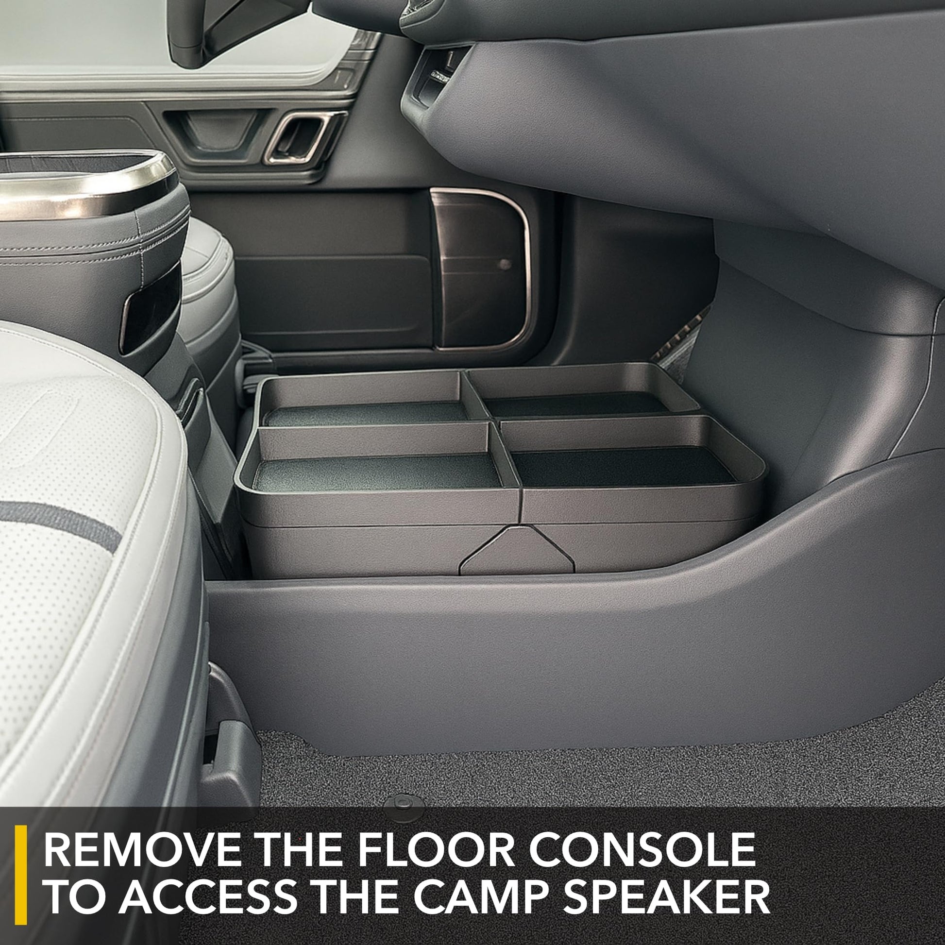 Introducing the TWRAPS Floor Console Organizer for the Rivian R1T & R1S (2022-2026). Crafted with durable ABS and premium leather liners, each compartment is meticulously designed to keep your essentials organized and minimize rattling. Proudly made in the USA, our industrial-inspired organizer is a testament to quality craftsmanship and functional design.