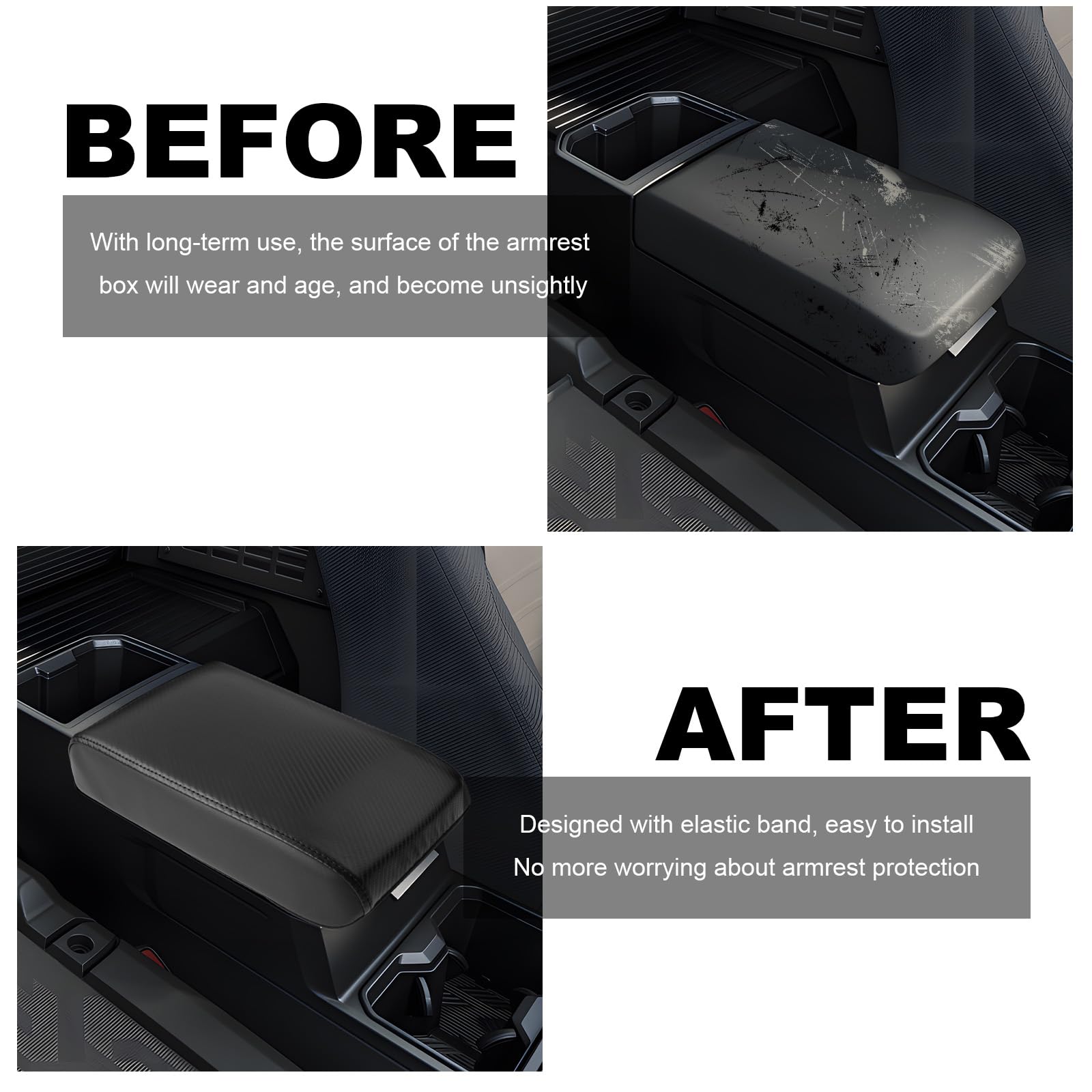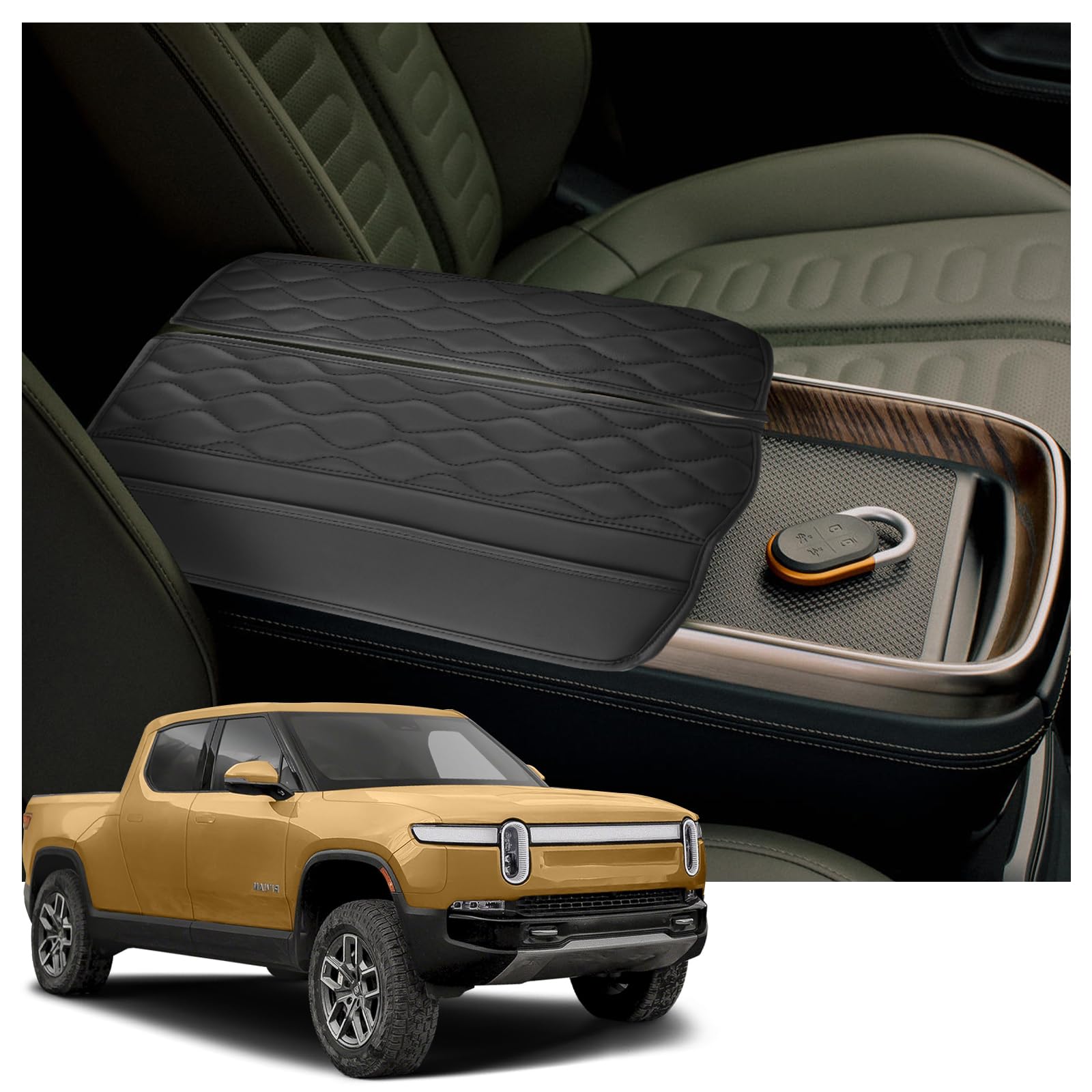 - 【So Comfy】the rivian r1t armrest cover made of PU leather, padded by a 1" thick soft and breathable cushion. It’s perfect for protecting the top of the console and has a nice cushion for your elbow if you use it while driving